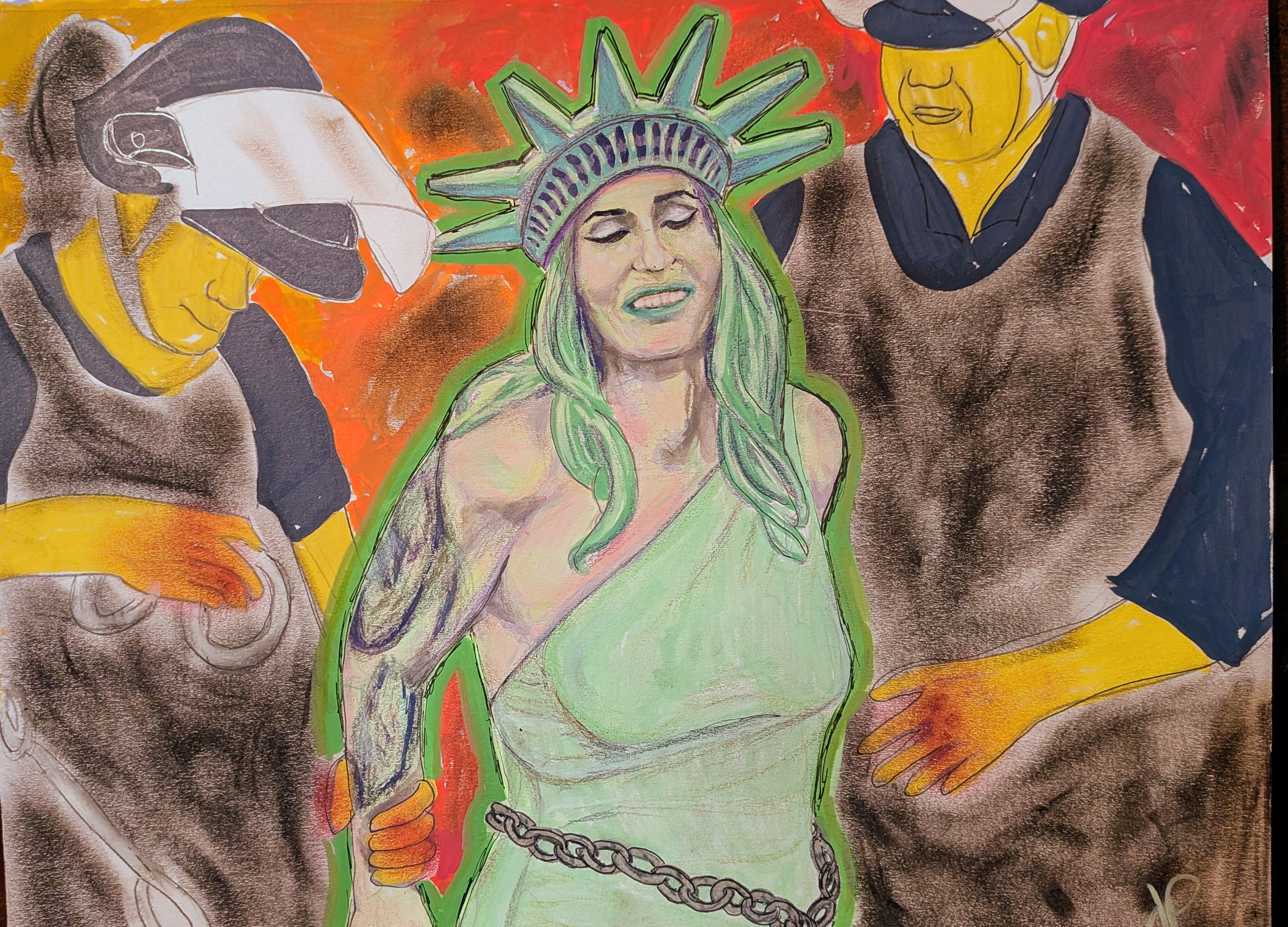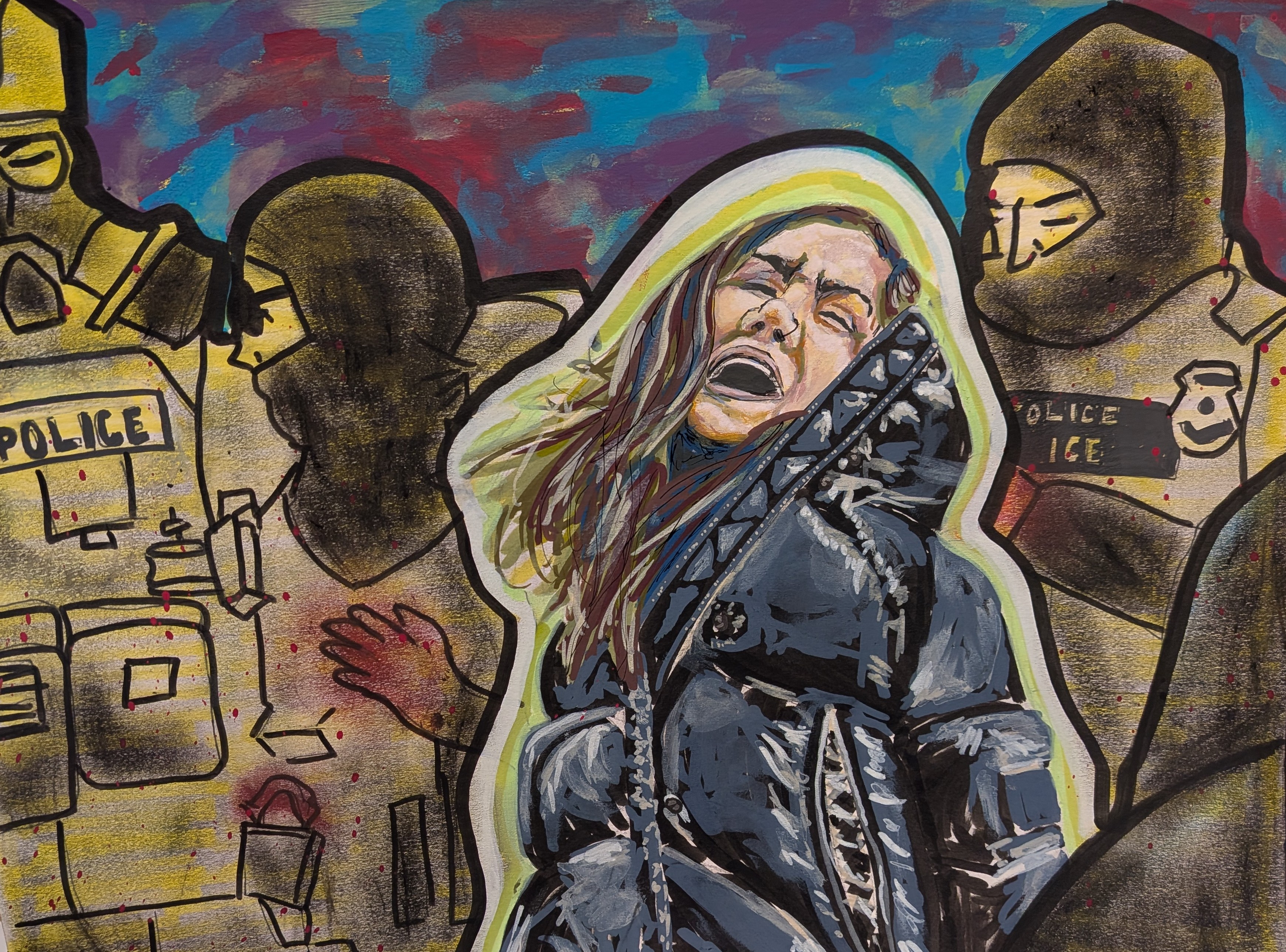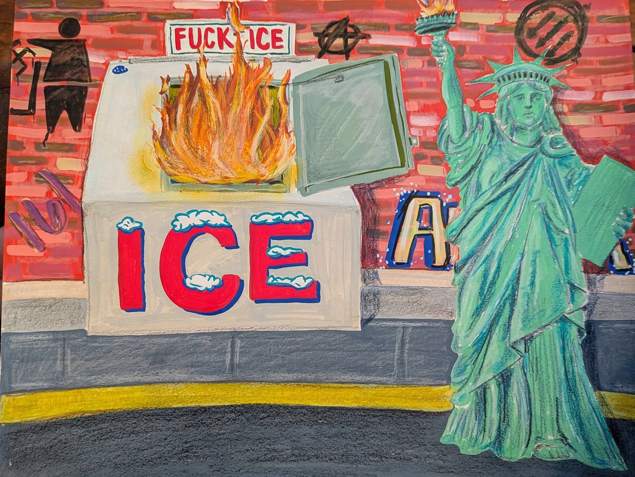 Their work is unmistakably their own: weird in the best way, bursting with bold colors, and infused with a pop‑art sensibility that refuses to whisper when it can shout. Often political, always personal, their pieces serve as both public commentary and private record—capturing the world as it is, as it feels, and as it could be.